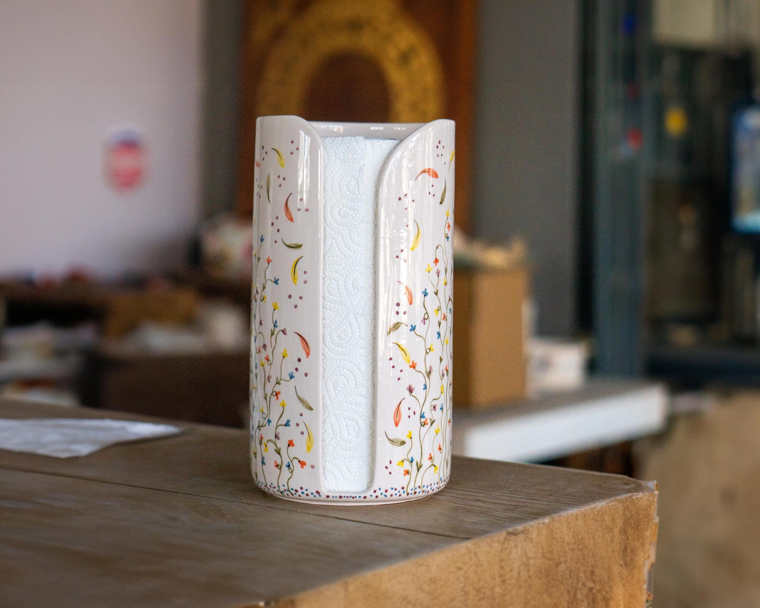 Handmade Floral Ceramic Paper Towel Holder – Paper Roll Holder