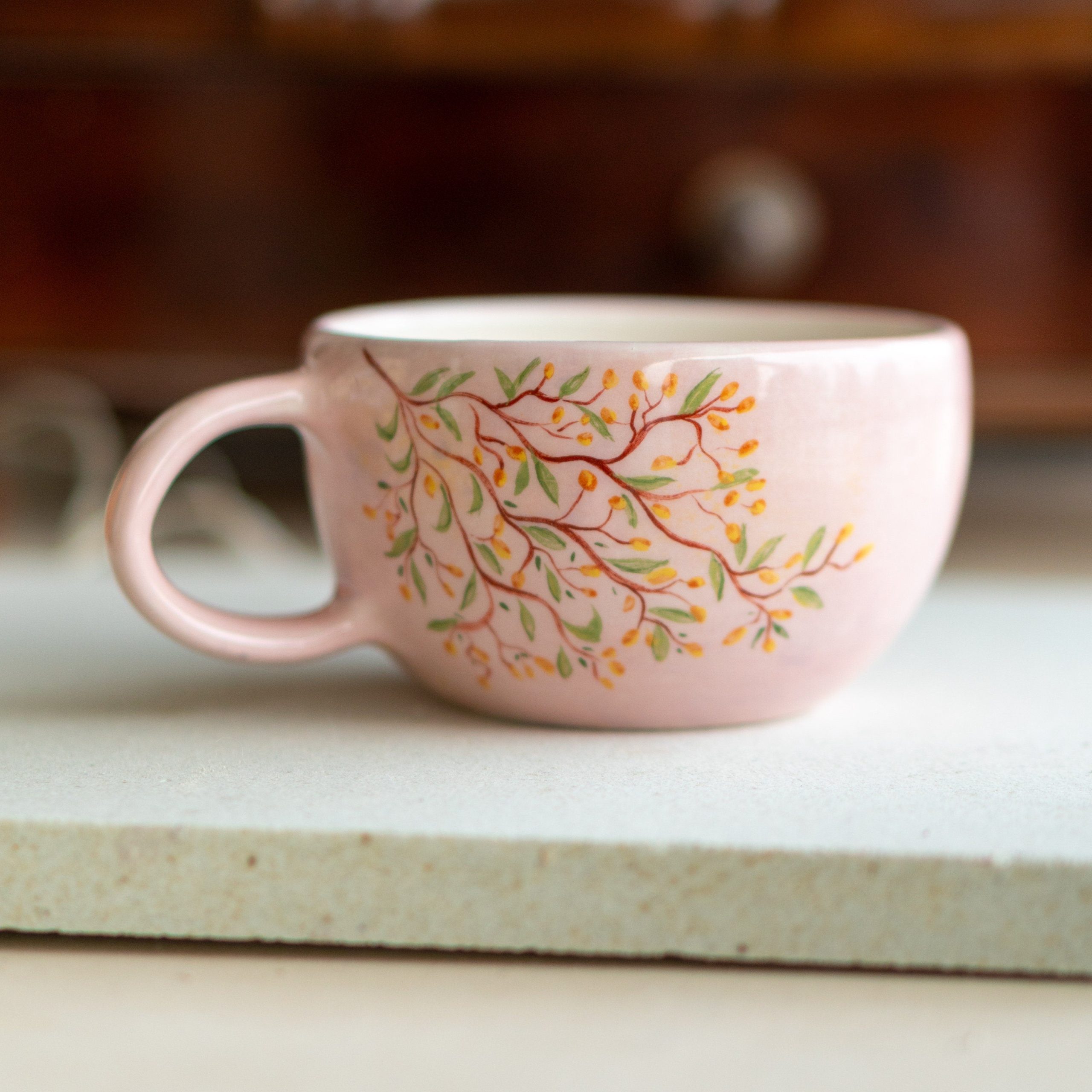 Floral Coffee Cup – Handmade Ceramic Mug, Pottery Mug, Tree Decorated Mug