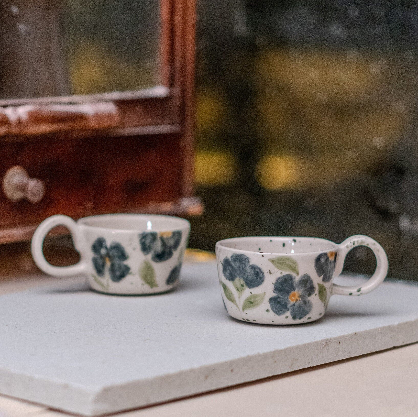 Floral Espresso Cup Set – Handmade Pottery Mug, Ceramic Cup
