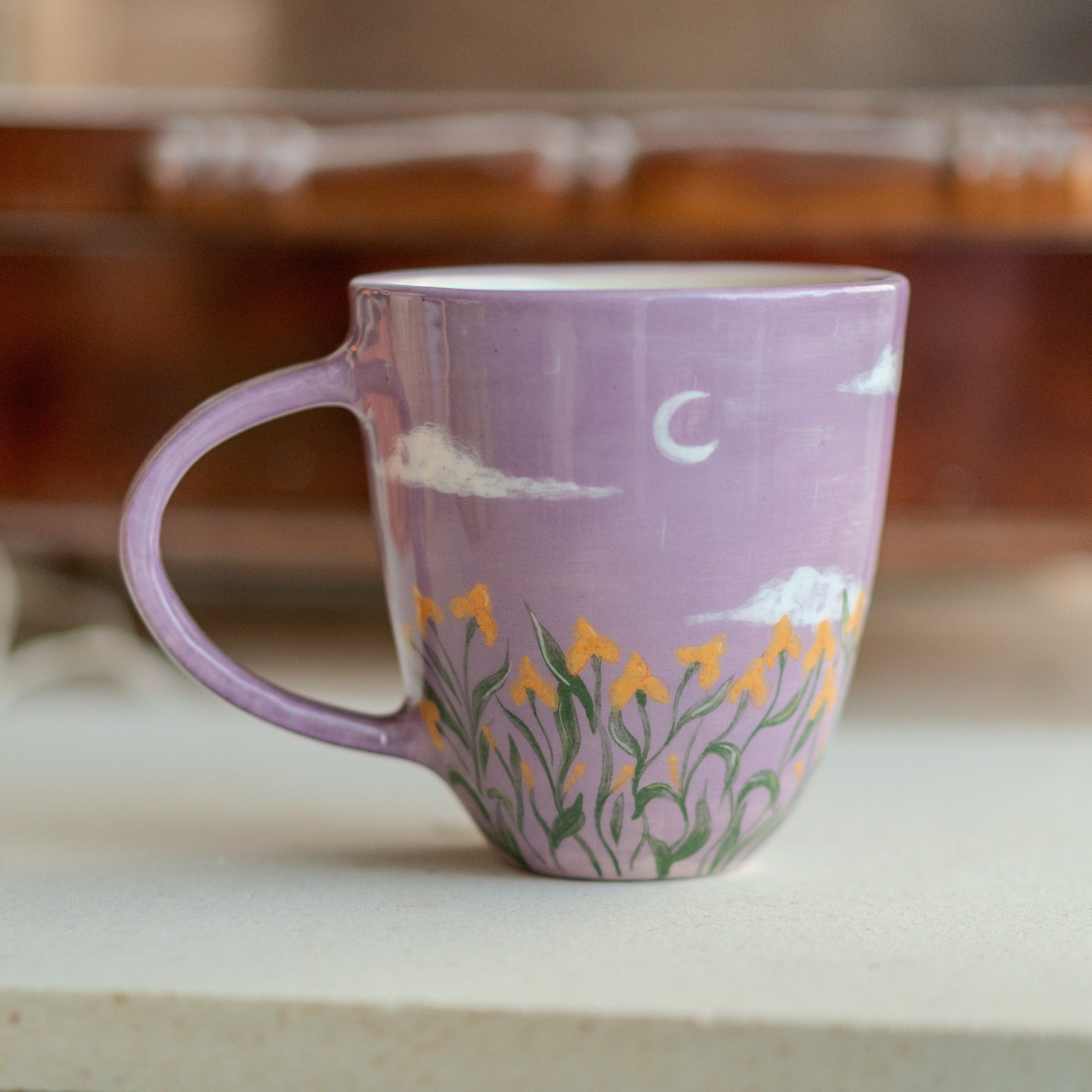 Lavender Mug – Landscape Decorated Mug, Handmade Ceramic Mug