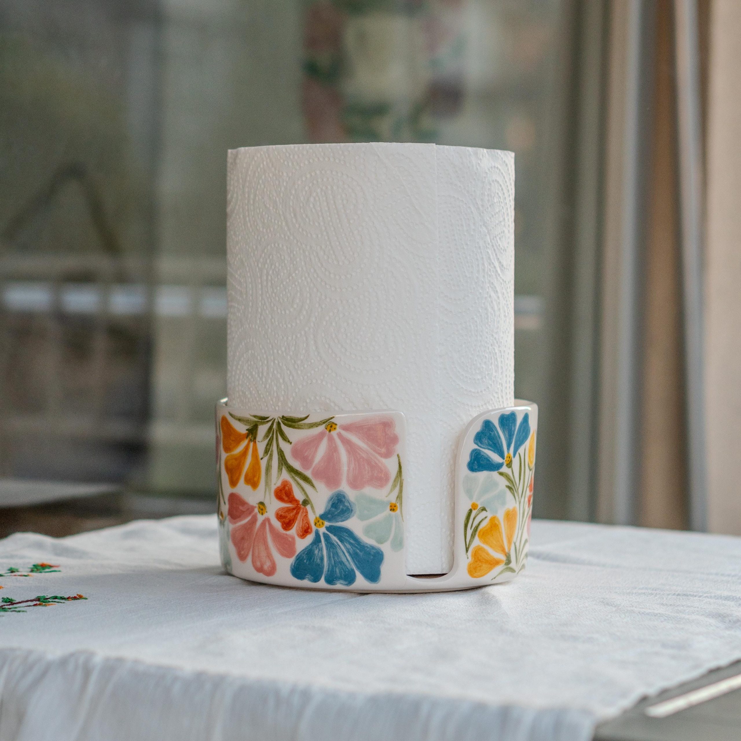Ceramic Paper Towel Holder Countertop, Summer Kitchen Decor, Floral Kitchen Decor