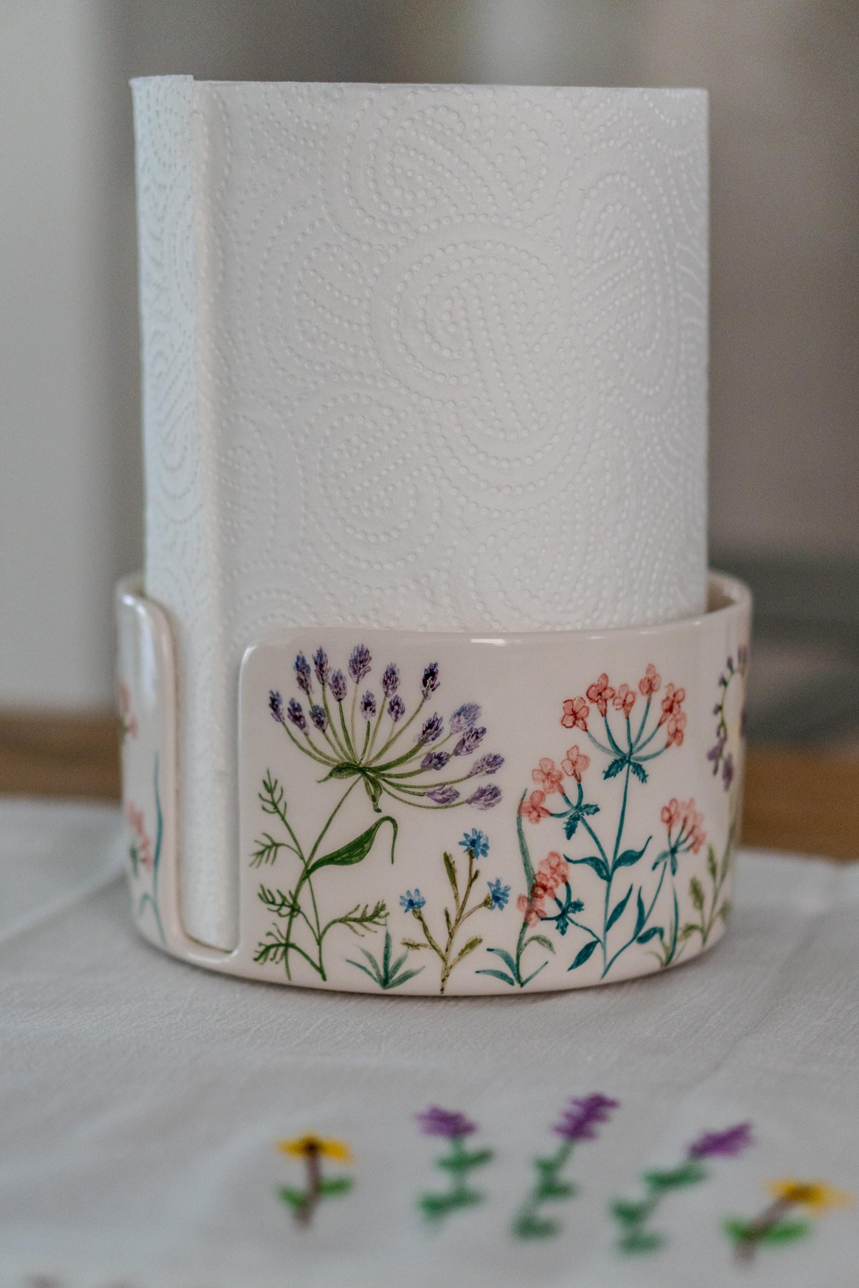 Paper Towel Holder – Flower Dopamine Decor, Freestanding Paper Towel Stand, Ceramic Paper Roll Holder