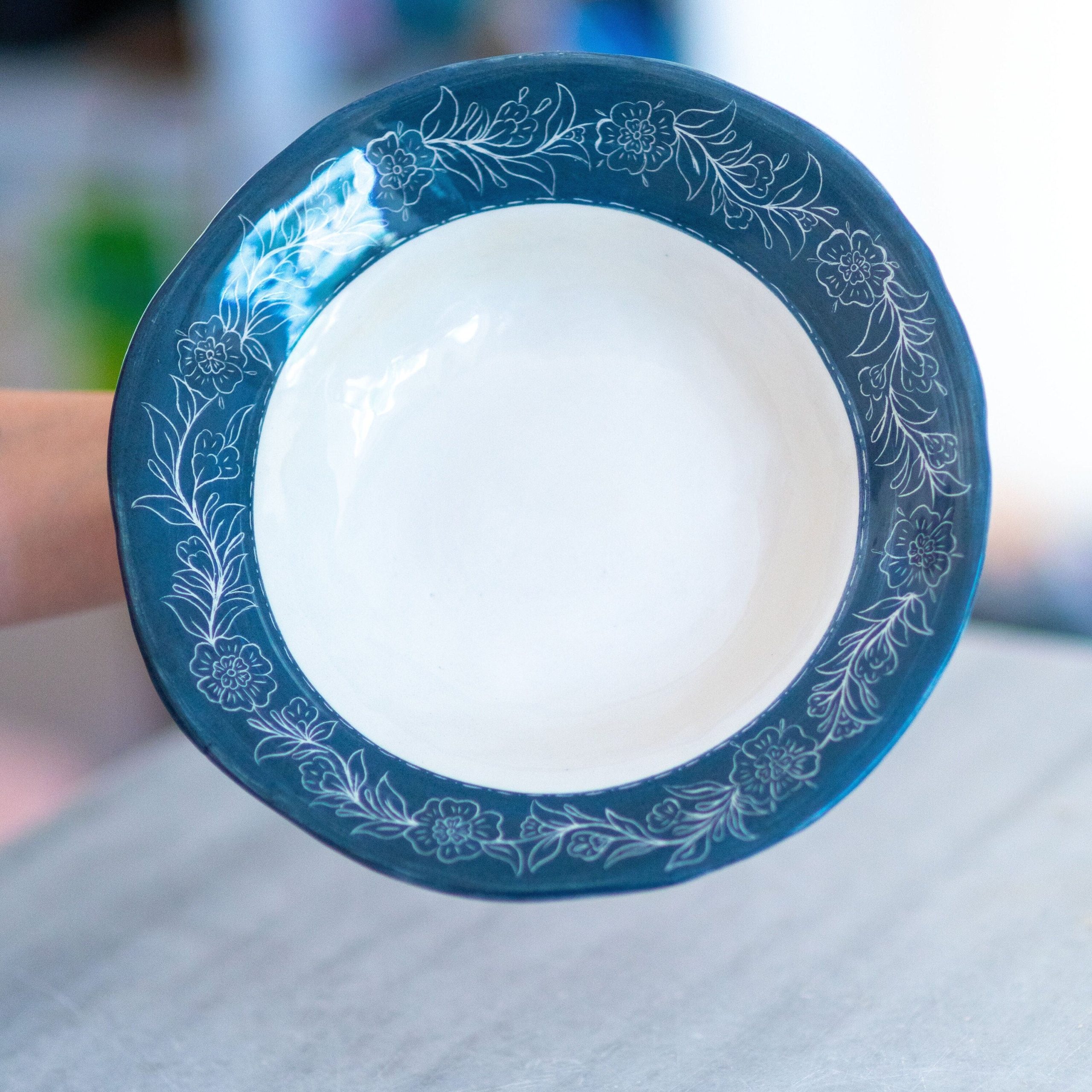 Pottery Dinnerware, Blue Blanc Plate, Handmade Ceramic Dinnerware Flower Theme, Housewarming Gift Idea