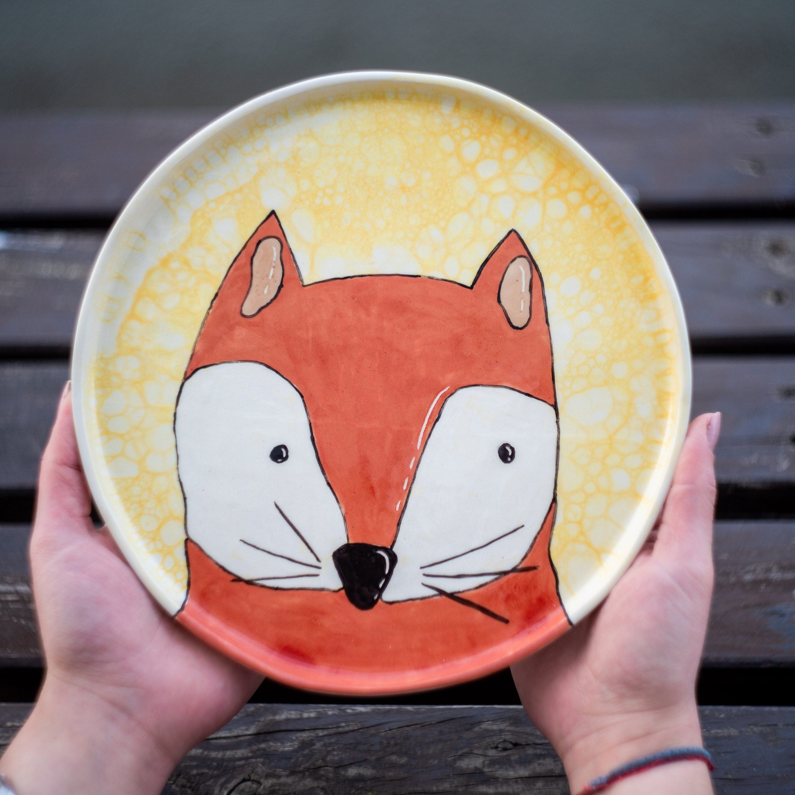 Red Fox Plate 25 CM | Handmade Children Plate | Animal Decorated Dish | Handmade Vivid Colors Fox Decor | Fox Happy Meal Plate