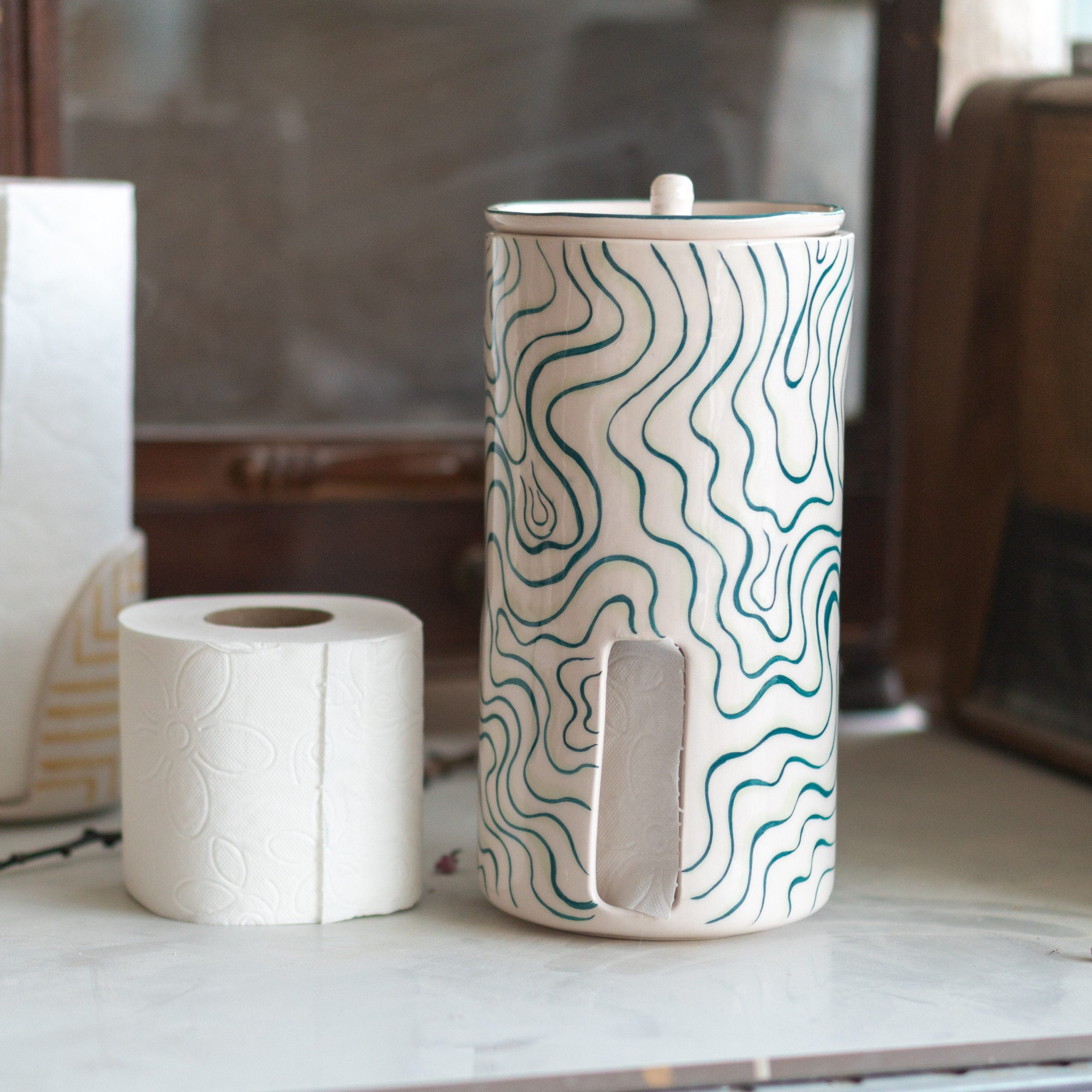 Toilet Paper Holder, Freestanding TP Holder, Handmade Bathroom Decor